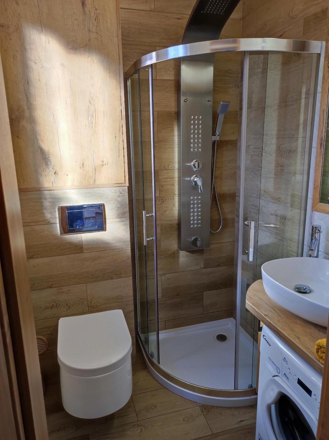 Dom z 2 sypialniami. This holiday homes special feature is the sauna. Boasting a private entrance, this air-conditioned holiday home includes 1 living room, 2 separate bedrooms and 1 bathroom with a shower and a hairdryer. Guests will find a stovetop, a refrigerator, a dishwasher and kitchenware in the fully equipped kitchenette. The holiday home also features a barbecue. Featuring a terrace with lake views, this holiday home also offers a washing machine and a flat-screen TV. The unit has 4 beds. Dom wakacyjny - 8 osobowy. Powierzchnia pokoju ok.: 35 mkw.